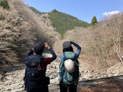 予報によれば昼頃に雨が降るということですが、歩き出しの時点ではきれいに晴れていて、この後に天気が悪くなるとはとても思えません。気持ちよく歩いて浅瀬橋から大又沢沿いの道に入り、かつてこの道が地蔵平から木材を積み出すトロッコの軌道であったことや、地蔵平・水ノ木といった西丹沢奥地の集落が山中湖畔の平野村とも結びつきが強かったことなどを解説しながら上流へと向かいました。