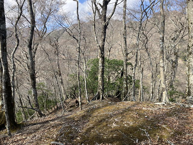 そうした登りもやがて斜度が緩み、白ザレの上の苔が美しい向山ノ頭を経て最後のひと頑張りで裸山丸に立つと、ブナに囲まれた明るい平地の穏やかさに癒されてここまでの苦労が報われた気がしました。