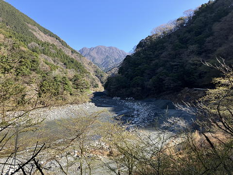 見れば見るほど今日はいい天気。玄倉川の上流には、後で登ることになる(はずの)同角尾根が鎮座しています。