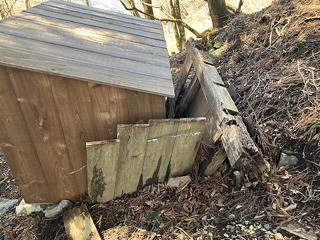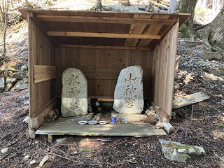 山神宮・水神宮に詣でてみると、なんと祠が新調されていました。ここに訪れるのはこれが3回目ですが、ぼろぼろの祠はそのうち崩壊するだろうと胸を痛めていたので、シンプルに三方を壁で囲い頭上を屋根で覆っただけの祠であってもこれはうれしいことです。