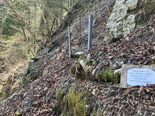 山神峠で小休止をとってから、山神径路を途中まで歩きます。出だしがいきなり崩落していますが、ここは上から巻いて簡単に通過可能です。