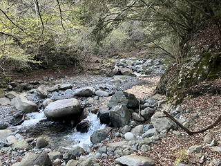 石崩隧道の手前から見下ろした場所が玄倉川の渡渉ポイントですが、水位は低く、どうやら問題なさそうです。