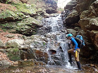 出だしがぱっとしないと書きましたが、少し進むと次から次へと小滝が連なるようになり、遡行者を飽きさせません。若干ヌメる感じがあるのと、倒木や枯葉のために荒れた印象を受ける点は残念ですが、それらを差し引いても面白みがコンパクトに続く良渓でした。