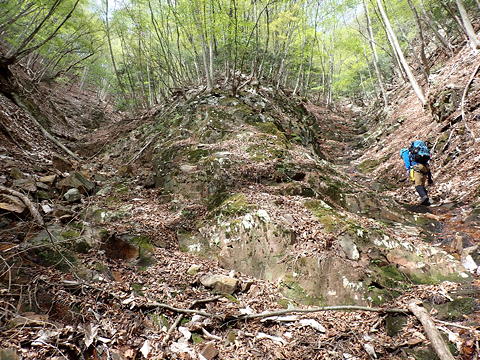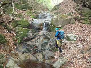最初の大滝の先にも小滝が続きます。この短い沢にはいわゆる河原というものがほとんどなく、沢床の大半が岩に覆われていることが美点です。