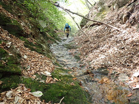 やがて源頭部が近づき、何度かの二俣ではなるべく水が多い方を選ぶことを心掛けました。