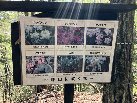 この解説板は尾根をある程度下ったところに掲げられていたものですが、実にタイミングよくここに載っているすべての花を見ることができました。